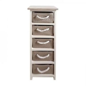 Meuble D Appoint Salle De Bain Blanc 4 Paniers Tresses Blanc