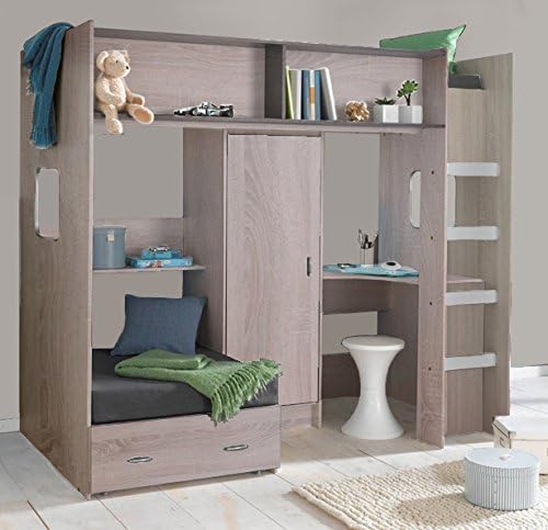 Lit Mezzanine Gemma Avec Bureau Armoire Integres 90x200cm