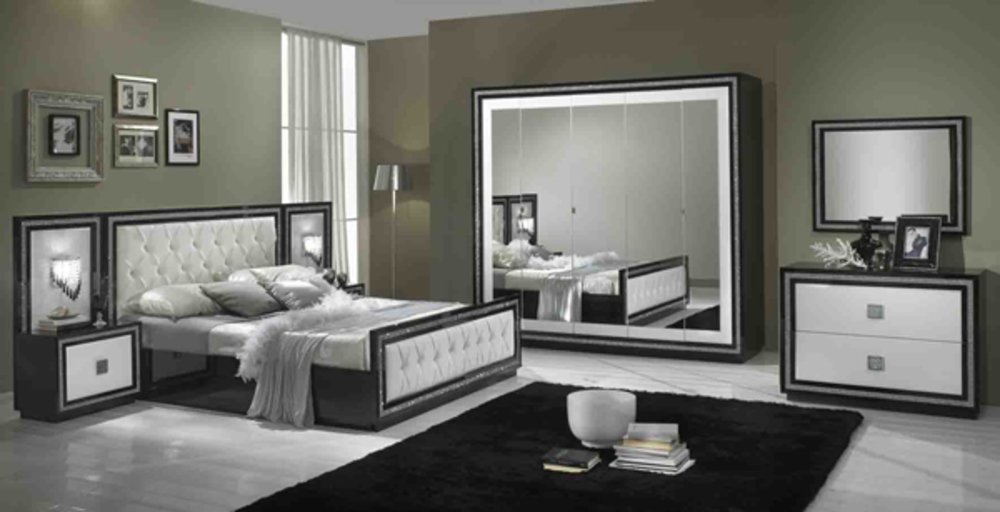 Armoire 5 Portes Krystel Laque Bicolore Noir Blanc