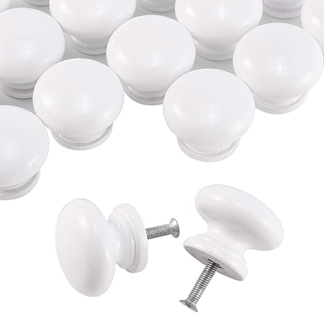 20x Poignee Bouton Bois Peinture Blanche 32x26mm Pour Armoire