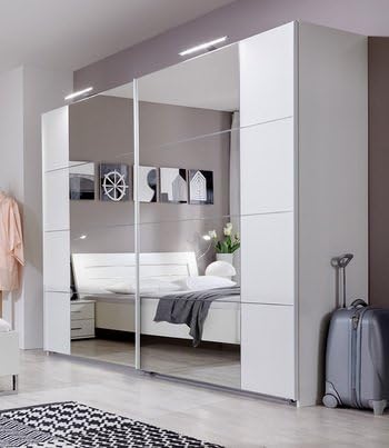 Armoire Blanche 2 Portes Coulissantes Avec Miroir Et Led Kola 10