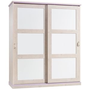 Armoire 2 Portes Coulissantes Imitation Chene Miroir 157 Cm