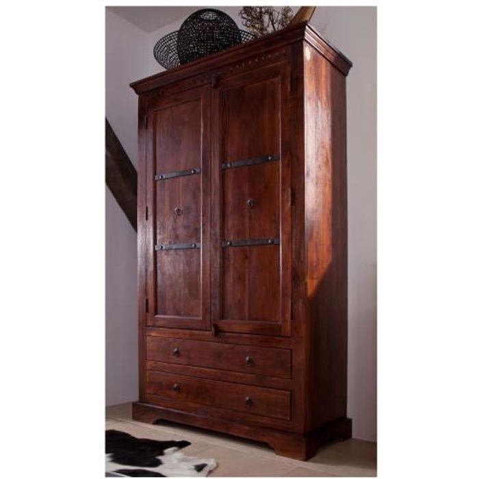 Armoire 2 Portes 1 Tiroir En Bois Massif Fonce Ar1040 Terre De