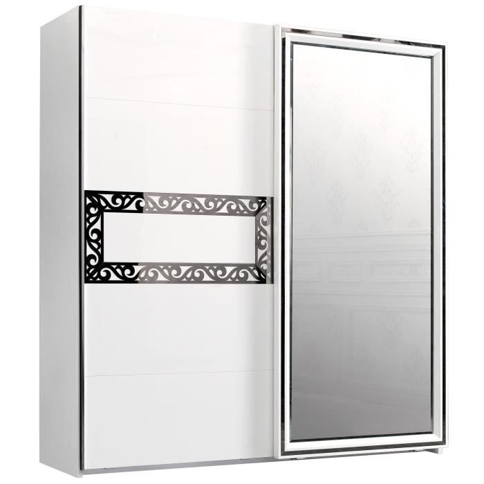 Armoire Blanche 2 Portes Coulissantes Avec Miroir Karo Dya