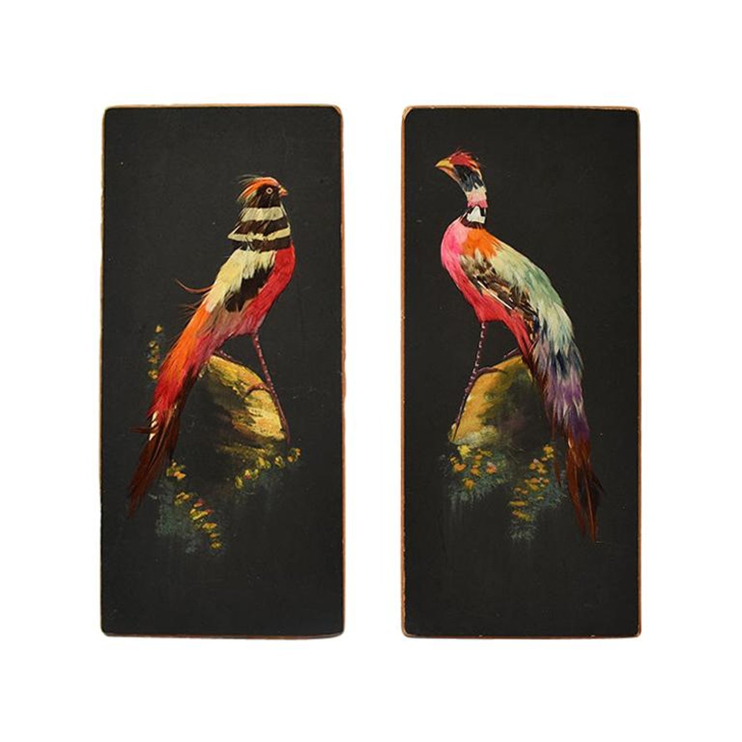 Colorful Folk Art Feather Bird Artwork On Paper Hanging Decor A