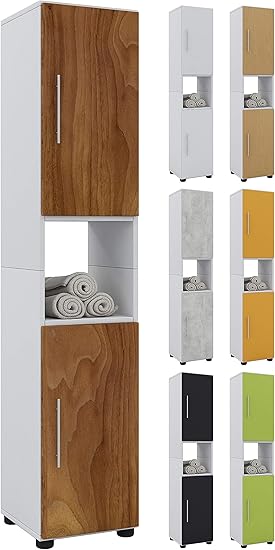 Vcm Hebola Armoire Haute De Salle De Bain Bois Blanc Noir 152 X