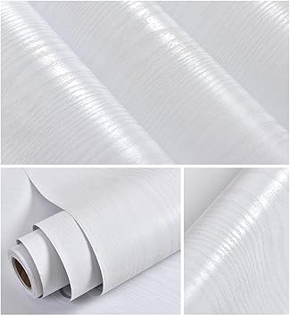 Auto Adhesif Blanc Grain De Bois Meubles Autocollants Pvc Papier