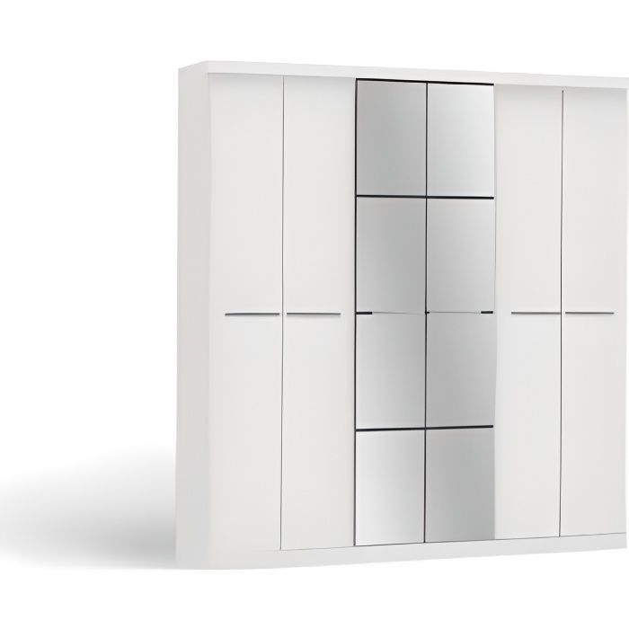 Armoire Design Blanche 6 Portes Avec Miroir 212x237 Blanc Achat