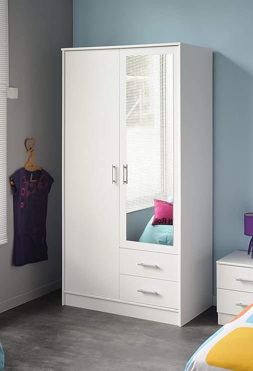 Max 6964a2pm Armoire Avec 2 Portes 2 Tiroirs Miroir Blanc 90 1 X