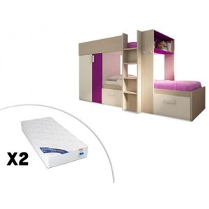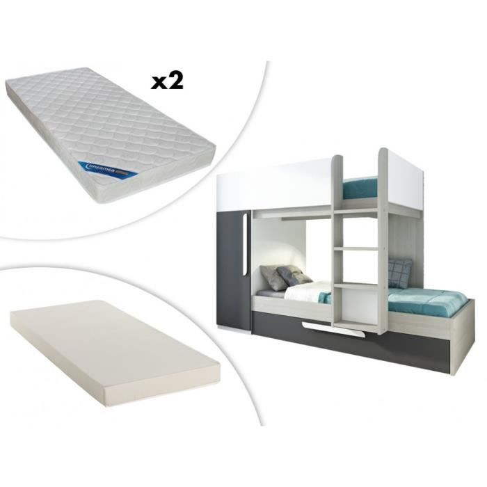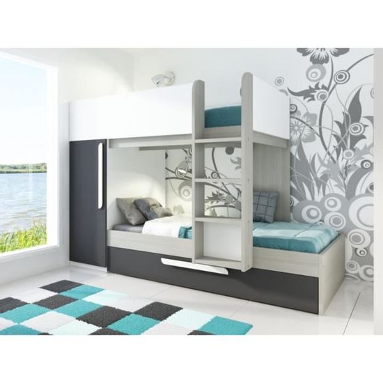 Lits Superposes Julien 90x190cm Armoire Blanc Chene Matelas