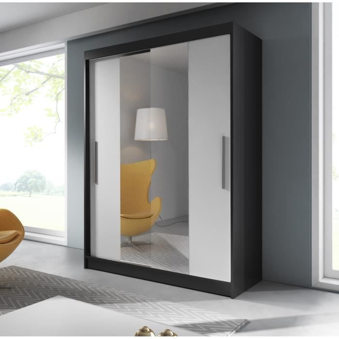 Meublo Armoire Penderie Avec 2 Portes Coulissantes Et Miroir L X