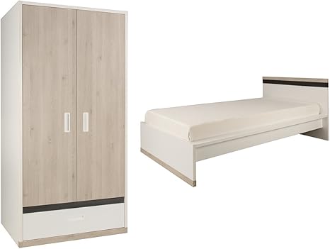 Lit Junior 120x200 Et Armoire 2 Portes Tiago Blanc Bois Amazon
