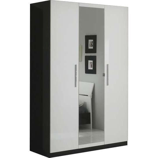 Armoire Ginola 3 Portes Avec 1 Miroir 136 Cm Noir Laque Blanc
