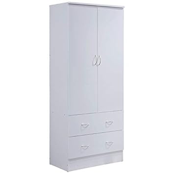 Amazon Com Pemberly Row 2 Door Armoire With 2 Drawer In White