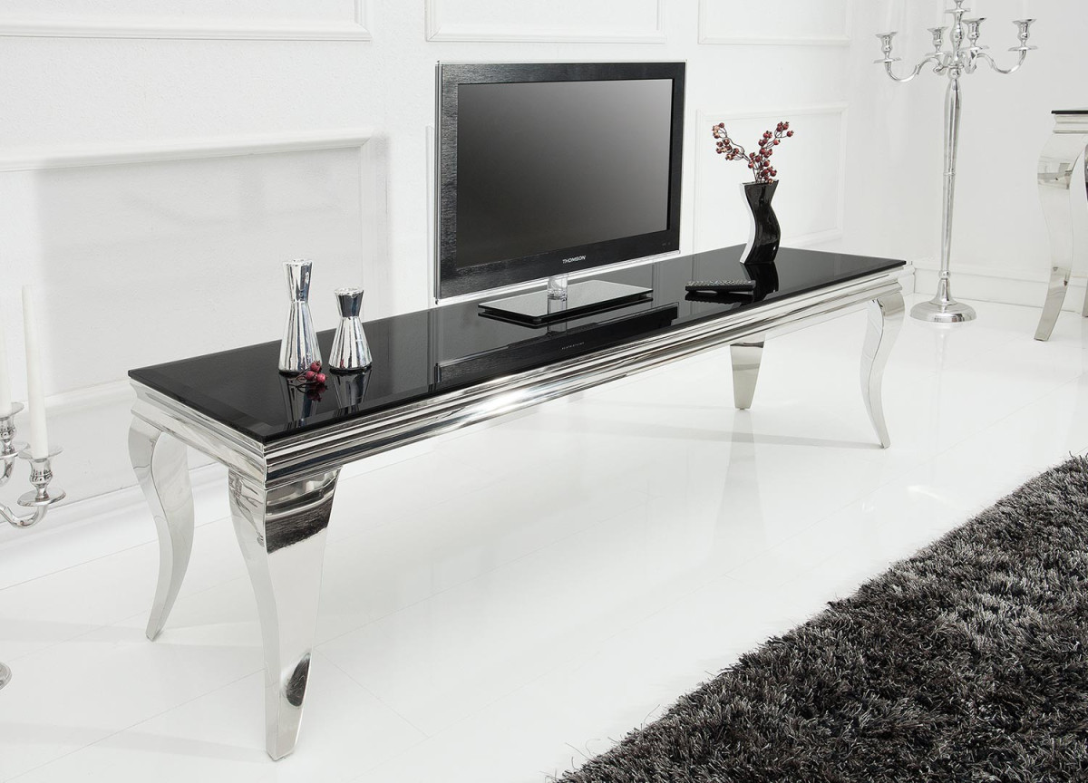 Meuble Tv Baroque Noir Et Metal Chrome 160 Cm Pour Salon