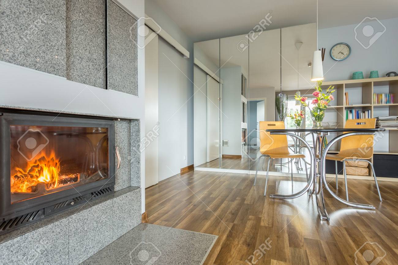 Salon Moderne Avec Cheminee Table Avec Chaises Et Armoire Avec