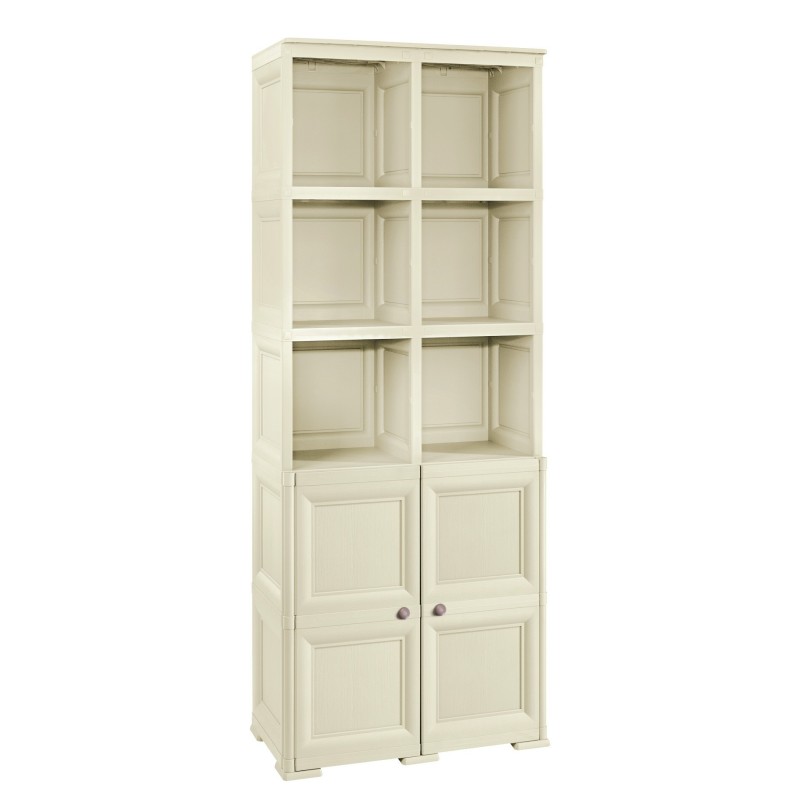Armadio In Resina 2 Moduli Con 2 Ante Stampa Legno E 3 Moduli