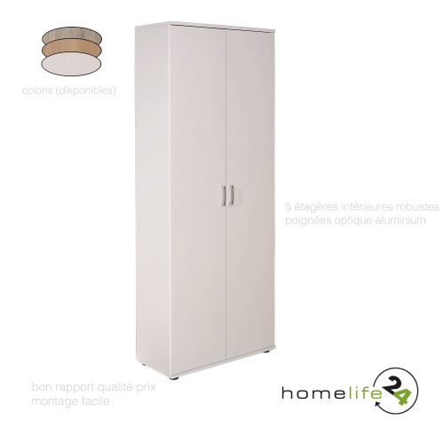 Armoire Rangement Bureau Etagere 2 Portes Bois Blanc Achat