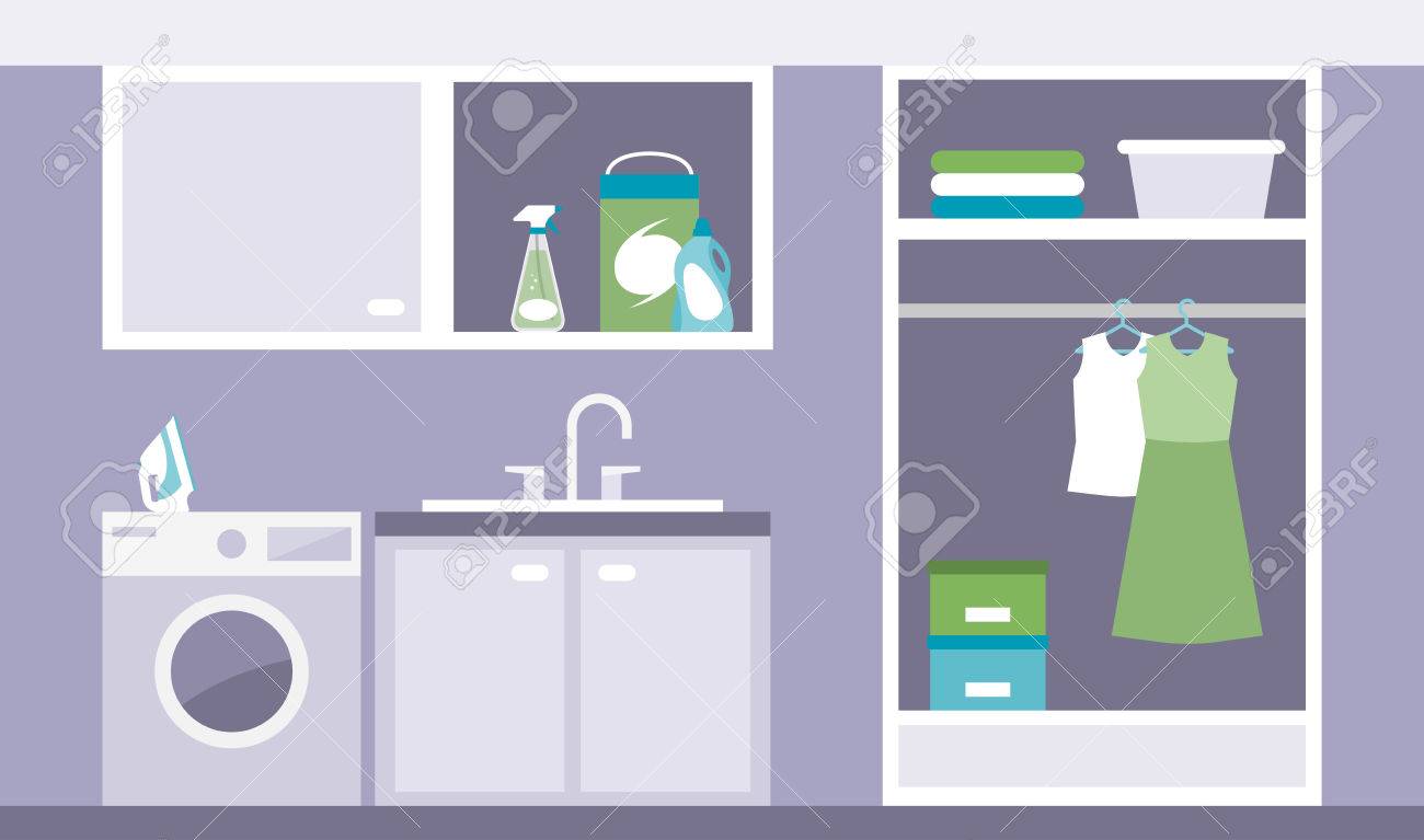Buanderie Moderne Avec Lave Linge Fer A Repasser Et Une Armoire