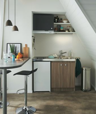 Réalisez tous vos projets de cuisine avec castorama. La kitchenette nomade est sans conteste la bonne idée de la. Kitchenette armoire équipée de hotte frigo plaque vitrocéramique 2 feux évier plan de travail rangement dans portes bois.
