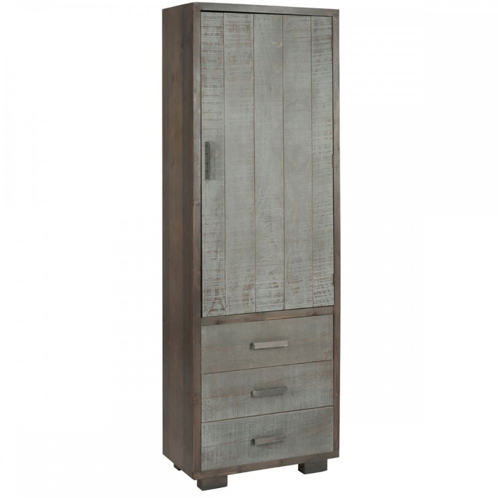 Armoire 1 Porte 3 Tiroirs Bois Gris Naturel J Line By Jolipa