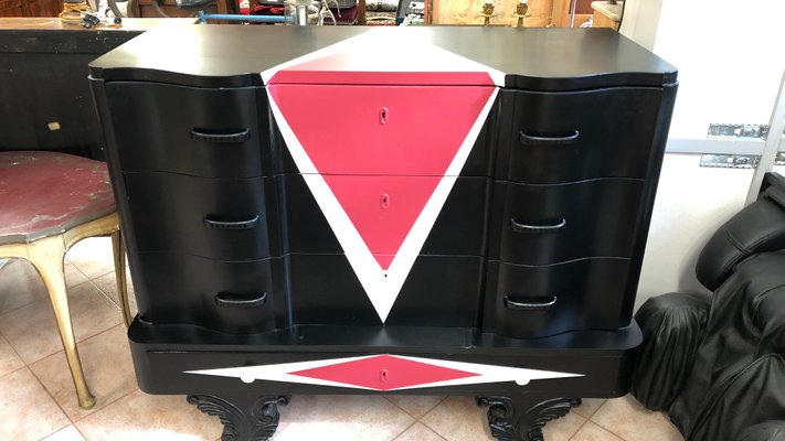 Art Deco Dresser Painted In Matt Black Wood Black Art Deco