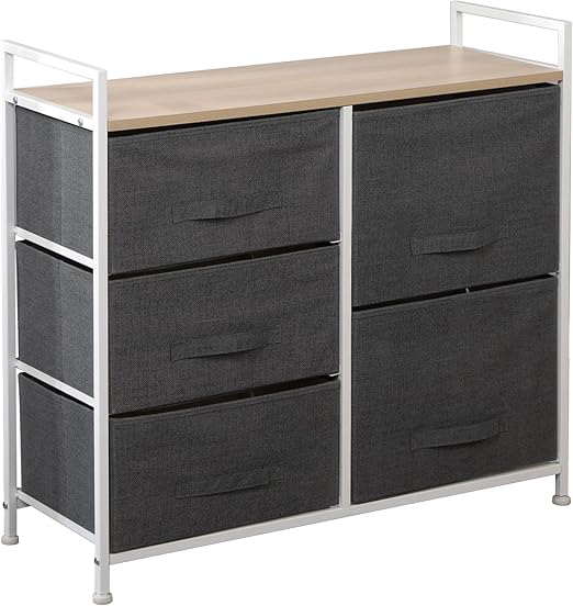 Sogesfurniture Commode 5 Tiroirs En Tissu Metal Bois Pour La