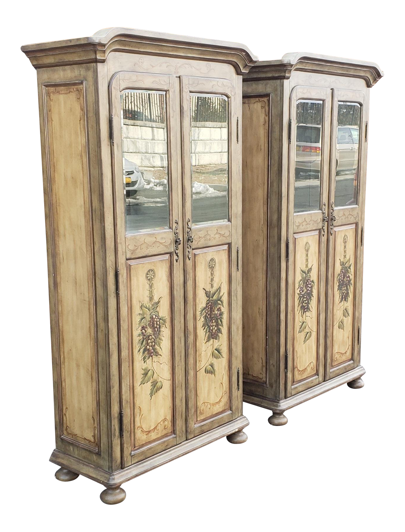 Pair Contemporary Country Painted Grape Motif Dining Room Armoire