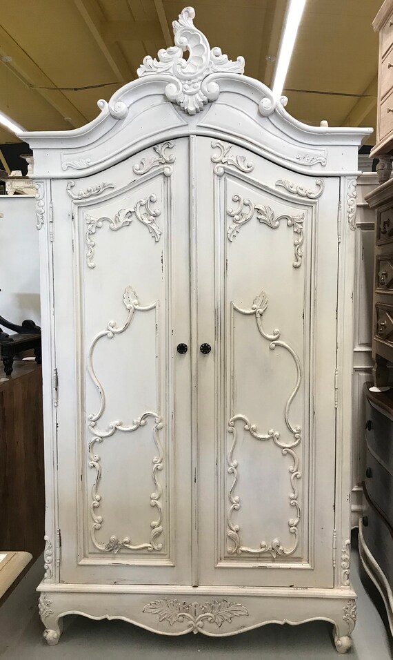 Painted Cottage Chic Shabby White Romantic French Armoire Etsy