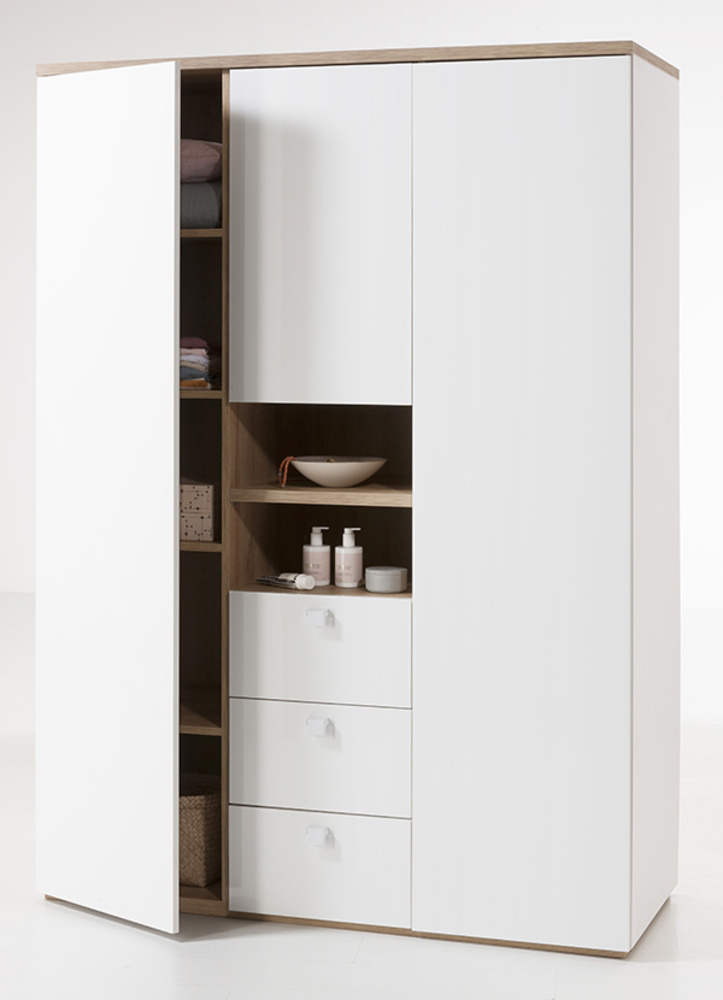 Armoire 3 Portes 3 Tiroirs Globo Chene Riviera Blanc Brillant