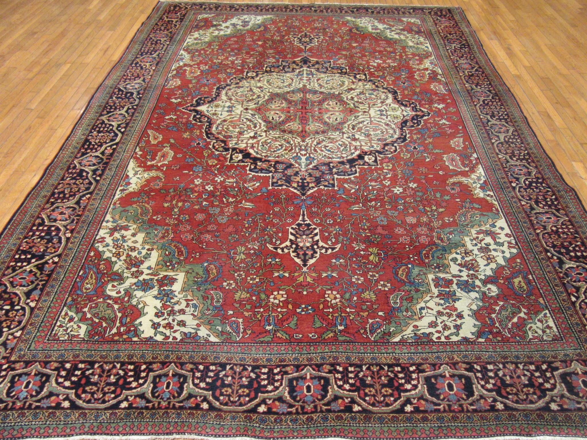 Antique Room Size Hand Knotted Wool Red Persian Sarouk Farahan Rug