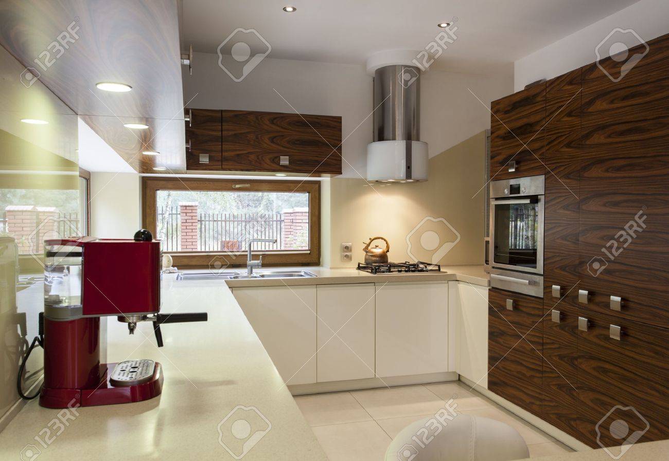 Interieur De Cuisine Moderne Et Elegant Avec Armoires En Bois