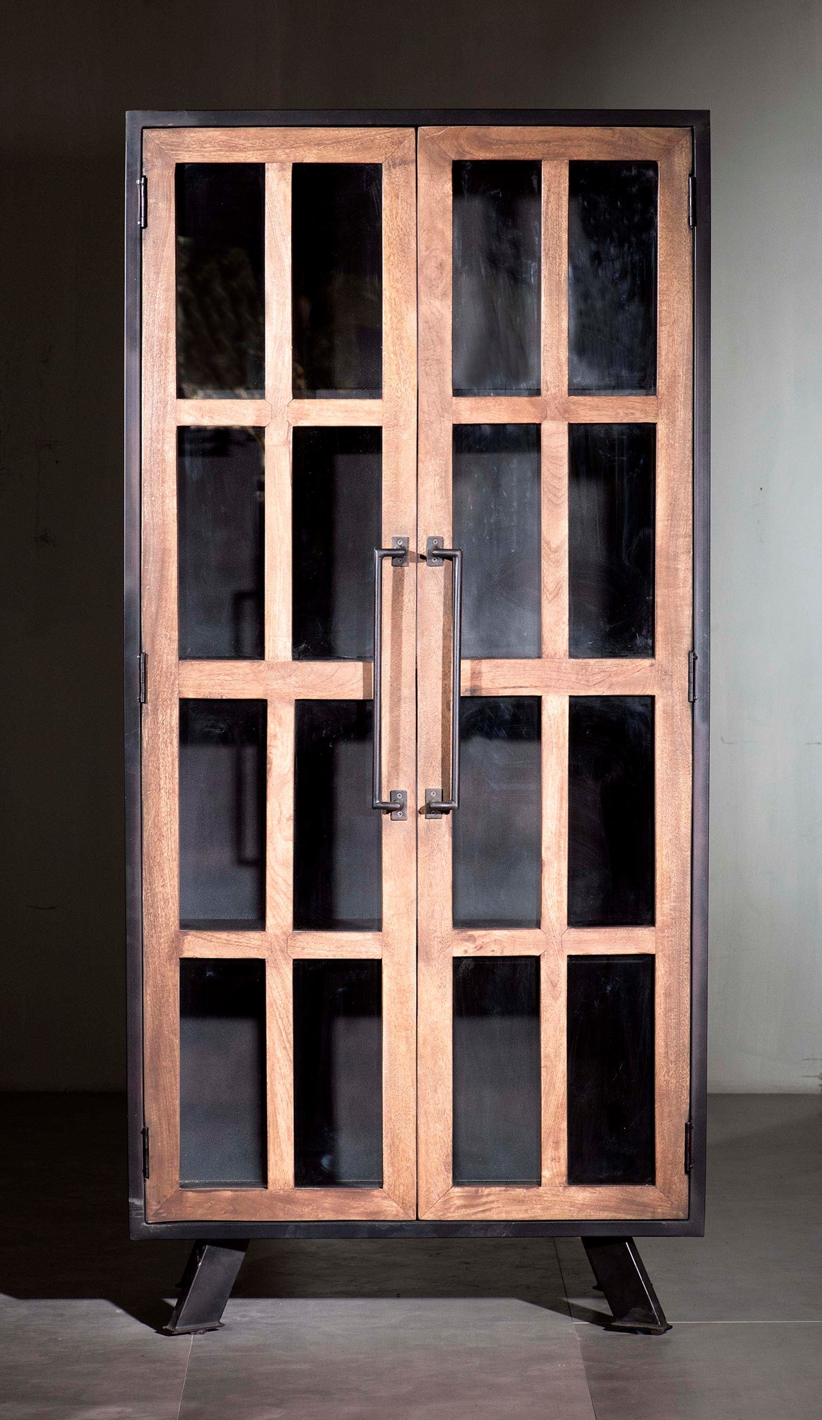Morocco Custom Grey Walnut And Iron Armoire Cabinet