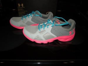 Under Armour Youth Girls Flow Running Shoes Size 6y Gray Aqua Pink