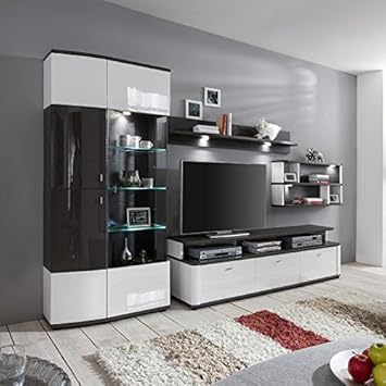 Element Mural Blanc Brillant Graphite Salon Armoire Murale Avec