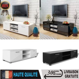 Meuble Tv Armoire Tv Meuble Television 2 Portes Blanc Brillant