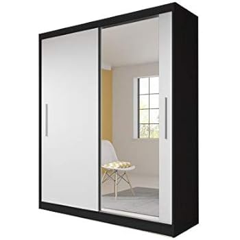 Armoire Noire 2 Portes Coulissantes Avec Miroir London Ix Dya
