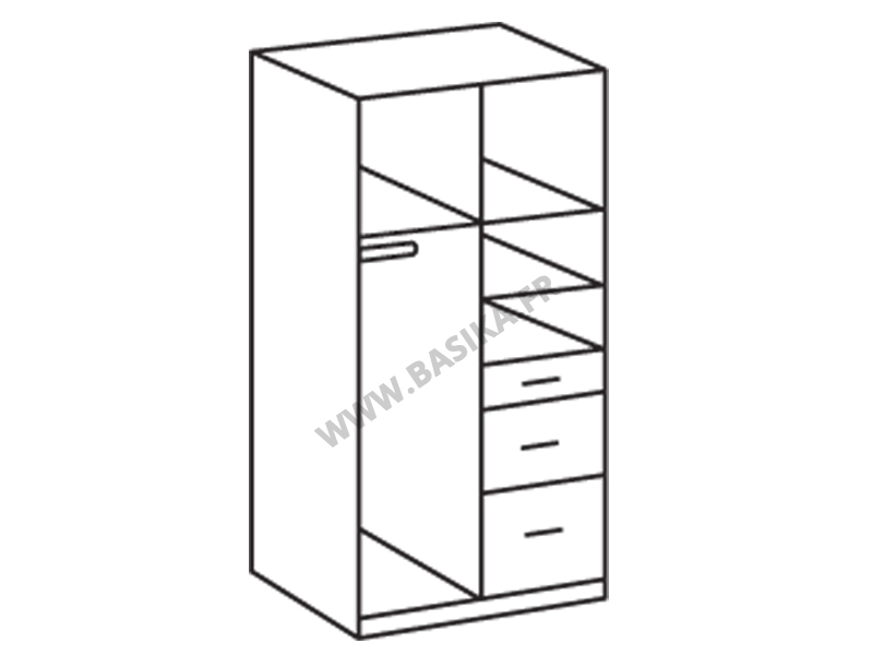 Armoire 2 Portes 3 Tiroirs Clack Blanc Noir Brillant Portes Miroirs