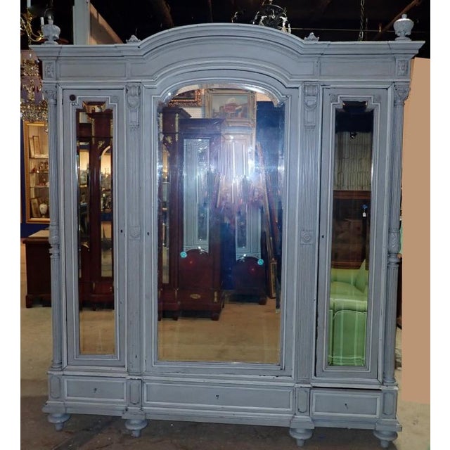 Vintage French Grey Painted Armoire Wardrobe With Single Mirror