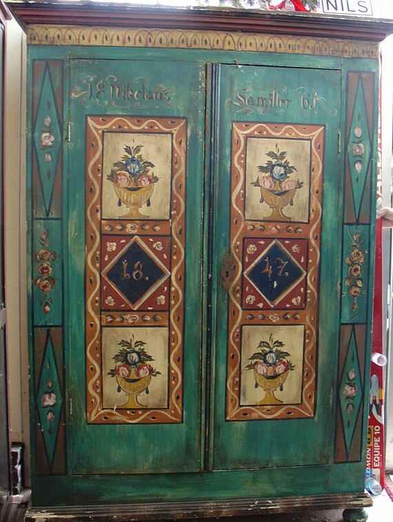 Russian Folk Art Painted Armoire Dated 1877 A189 Ebay