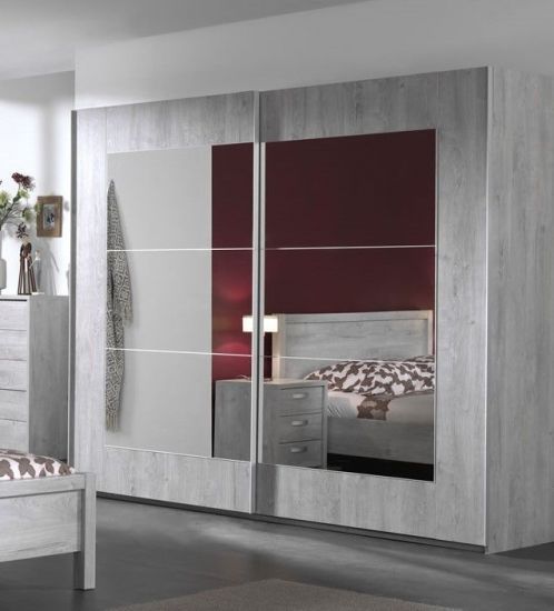 Armoire Blanche Et Chene Avec Miroir 2 Portes Coulissantes Cbc