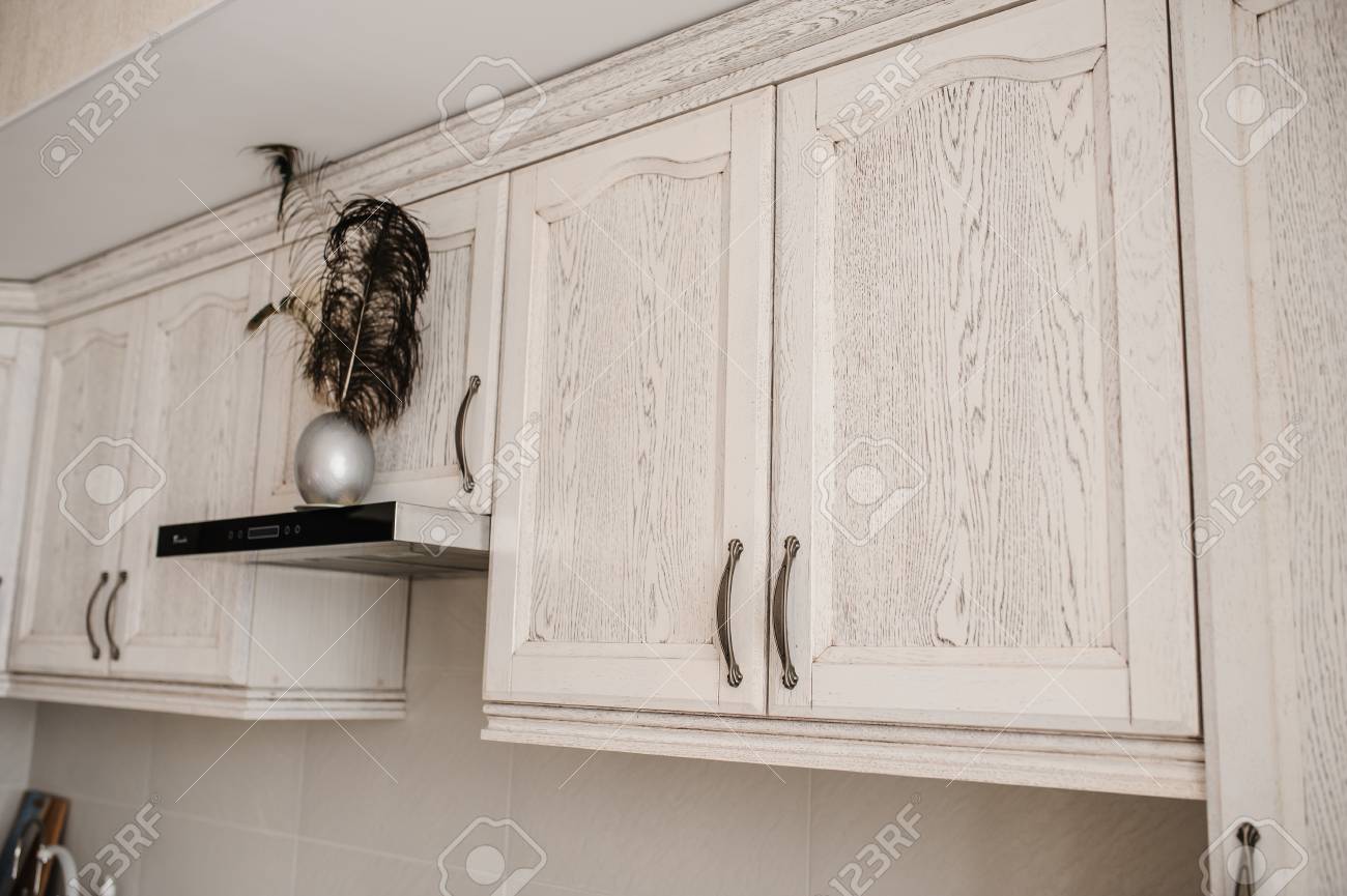 Peint En Blanc Armoires De Cuisine En Bois De Style Shaker Photo