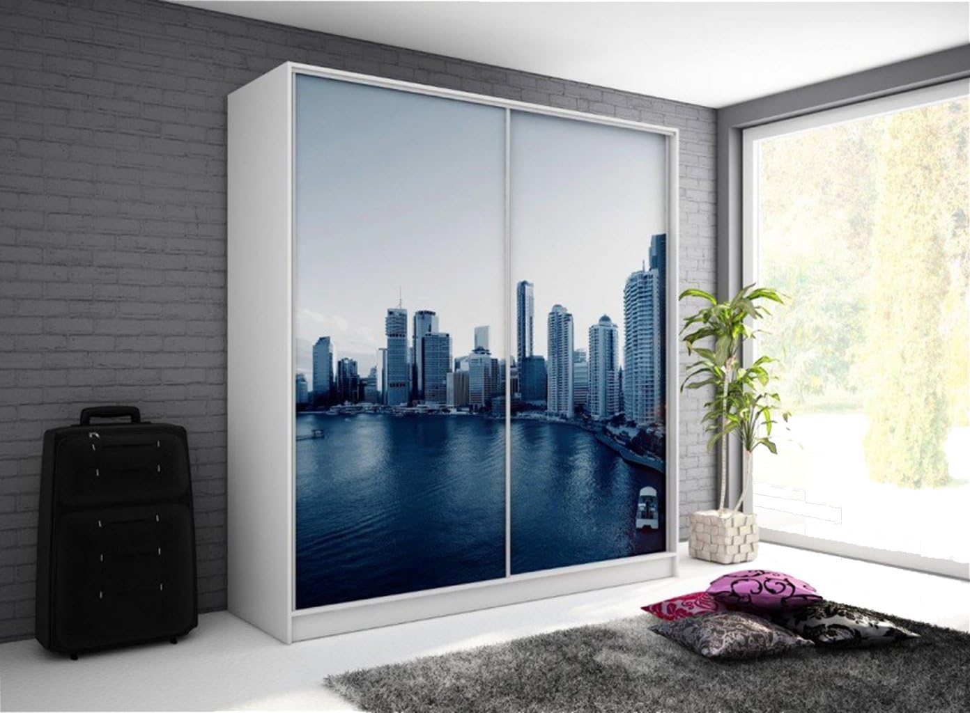 Armoire Avec Impression New York Citadine 2 Portes Coulissantes