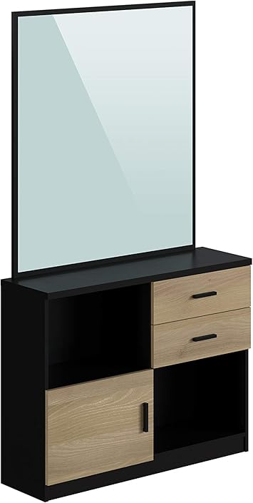 Meuble D Entree Bois Blanc Bois Noir Miroir Nikita Petits Meubles