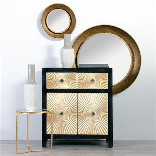 Meuble D Entree 2 Portes 2 Tiroirs Noir Or Monoi L 81 X L 40 X