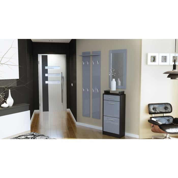 Vestiaire D Entree Noir Et Gris 195 Cm Achat Vente Meuble D