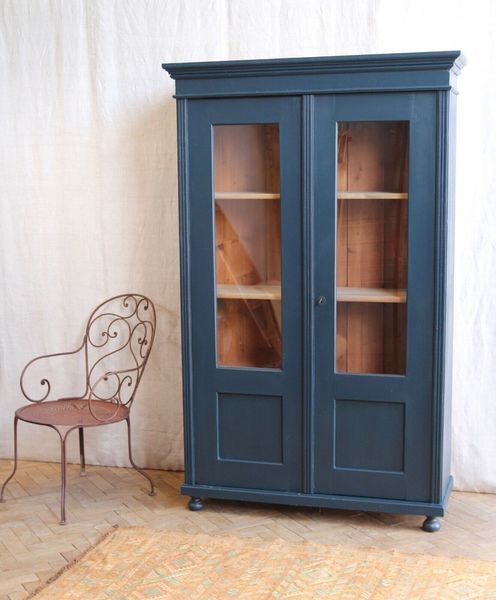 Vintage Antique Blue Painted Larder Linen Press Glass Cupboard