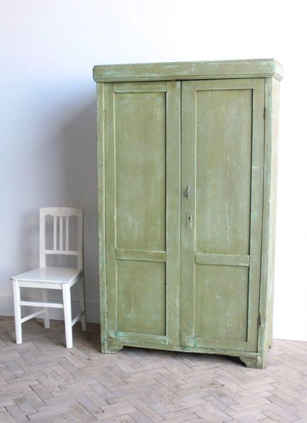 Vintage Antique Large Green Painted Larder Cupboard Armoire