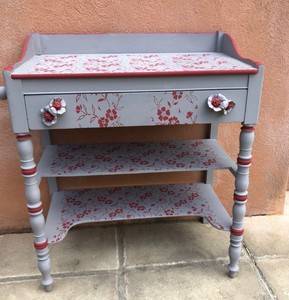 Adorable Meuble Toilette En Bois Peint Gris Et Rouge Louis