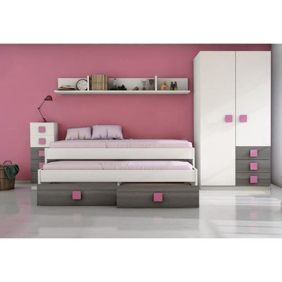 Lit Superpose Antonio 2x90x190cm Armoire Rose Poudre Blanc